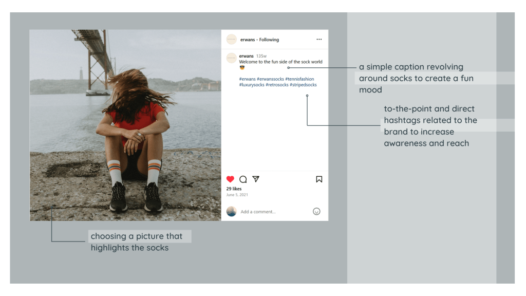 In collaboration with Erwans, I undertook a comprehensive initiative to establish a strong social media presence for their high-quality cashmere and cotton sock business. The objective was clear: to reach new audiences, enhance brand awareness, and create a distinctive identity in the competitive sock market.